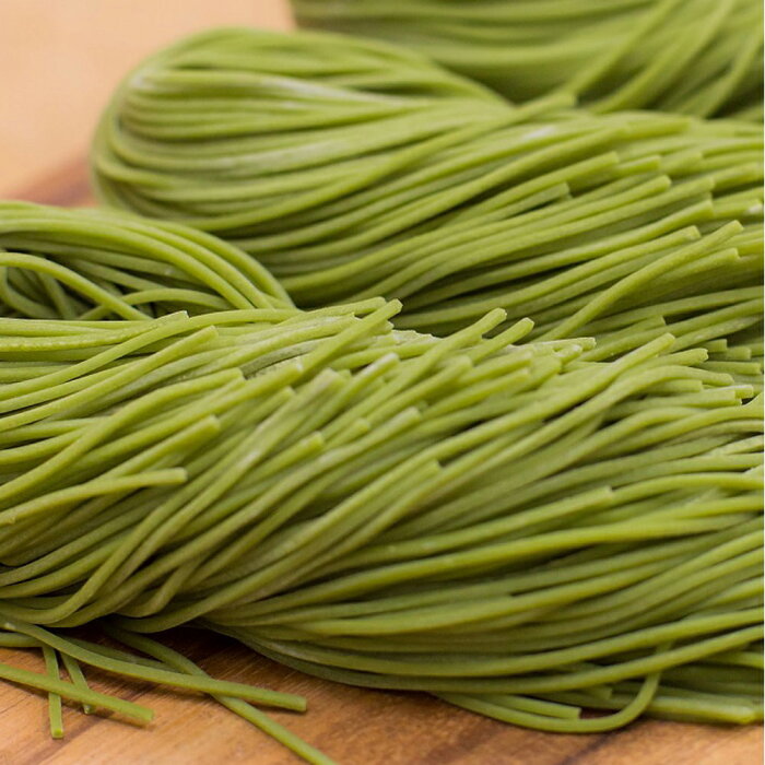 ビタミンC・鉄分・食物繊維などを豊富に含んだ桑の葉を粉末にし、盛岡冷麺の麺に練り込むと美しい緑色になります。