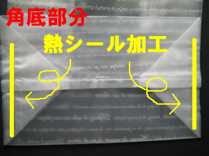 角底部分に熱シール加工がしてありますので、 型崩れせず自立します。