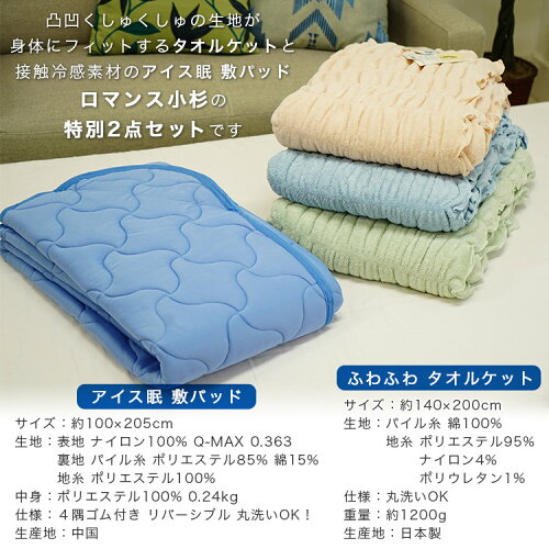 夏の福袋 ロマンス小杉 アイス眠 冷感敷パッド ふわふわタオルケット2点セット