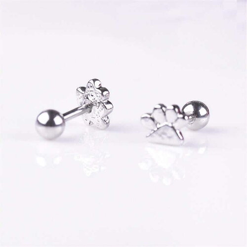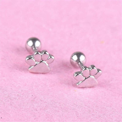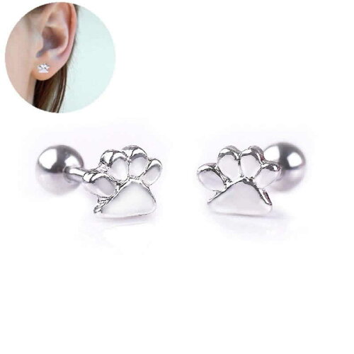 [16ゲージ ストレートバーベル ボディピアス] わんにゃんボディーピアス 16G ステンレス 肉球 足型 イヌ 犬 ネコ 猫 フットスタンプ メンズ レディース ヘリックス トラガス シルバー プレゼント クリスマス ホワイトデー アニマル 動物 アンテナヘリ 人気 可愛い 真っ直ぐ