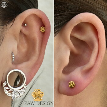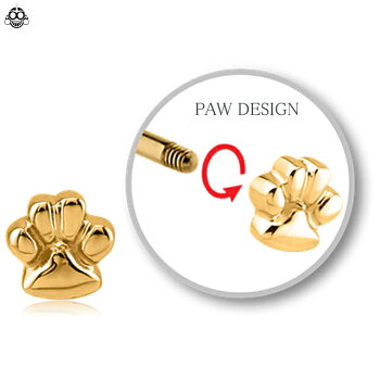 16G 14G ゴールド PAW アニマル 足跡 肉球 ストレートピアス ロブ 軟骨 舌ピアス ボディピアス【BodyWell】