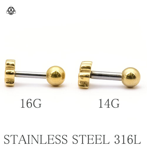 素材 サージカルステンレス316L(ボールとデザインはカラーPVD) サイズ ゲージサイズ16G/14Gシャフトサイズ選べますボールサイズ4mm 特徴 動物の足跡がとってもキュート!!ゴールドカラーが高級感があります。