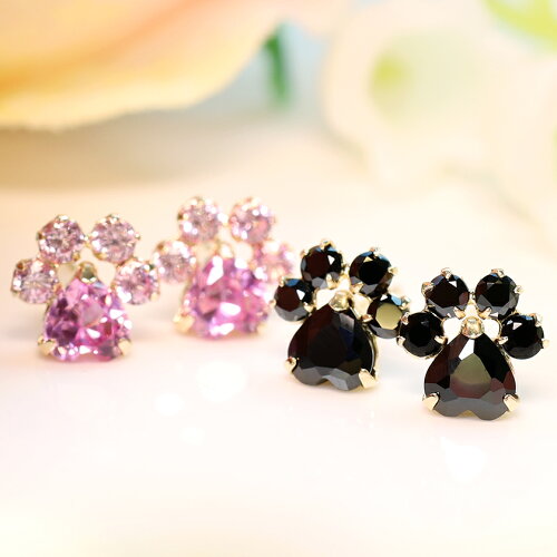 )つやつやぷにぷに!イヌネコ好きさんにたまらない、キュートな肉球ピアス! ブラックキュービック/シンセティックピンクサファイア×K10ゴールドピアス・パウネル イヌネコ好きによる、イヌネコ好きのための 肉球ピアスをおつくりしました! ぷにぷにと柔らかそうな足跡が可愛い♪