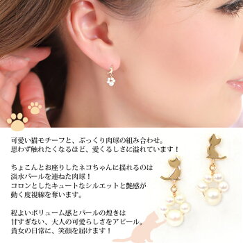 ネコ 肉球 ピアス 淡水パール 真珠 K10YG 【プレゼント ギフト】▼