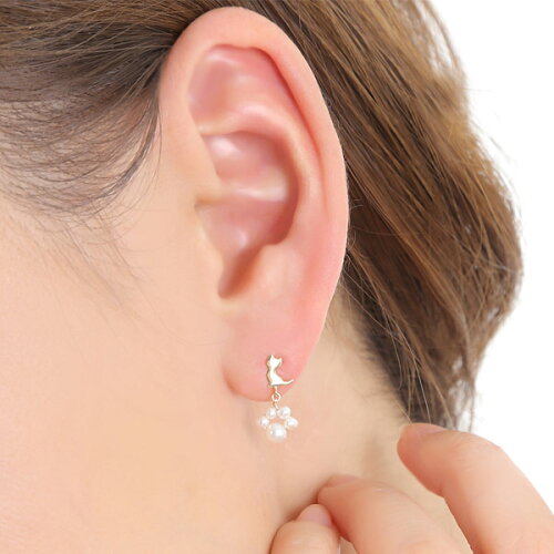 *材質 ・K10イエローゴールド *石仕様 ・淡水パール 約4-4.5mm珠 片側1石 約2-2.5mm珠 片側4石 *全体仕様 ・上下:約14.7mm ・幅:約7.0mm ・ポスト:太さ0.65mm、長さ9.6mm *付属キャッチ ・K10 シリコン付ダブルロックキャッチ *全体重量 ・ペアで 約0.5gネコ 肉球 ピアス 淡水パール 真珠 K10YG 猫 イエローゴールド 6月 誕生石 10k 10金 揺れる 白 キティ 大人可愛い