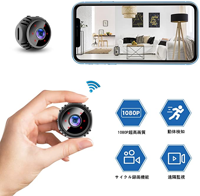 小型カメラ 隠しカメラ 防犯カメラ WiFiスマホで見れる 128GB 対応 1080P 暗視 防犯 監視 動体検知 録画と録音機能を備えています 長時間録画 自動保存 USB充電 配線を必要とせず 屋内/屋外の小型監視カメラ