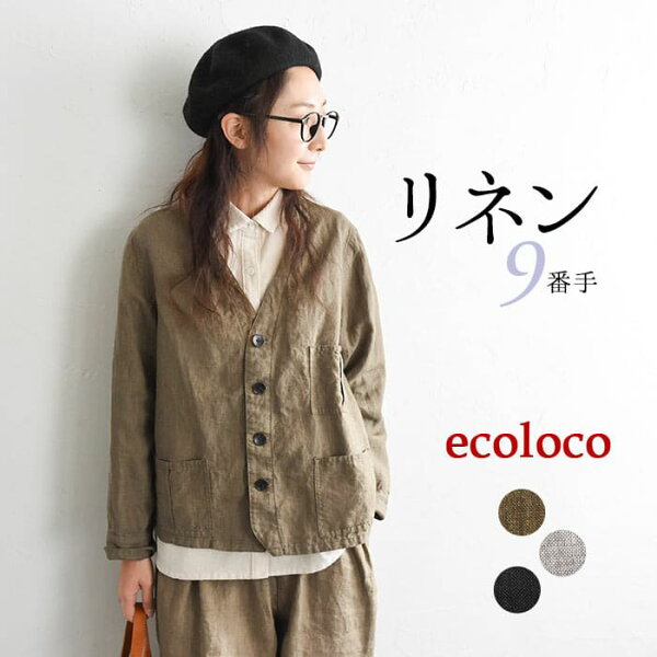 ジャケット M〜3L 9番手 ヴィンテージリネン リネン100% ノーカラー ライトアウター ナチュラル e+ 大きいサイズ M L LL 3L earth_eco_loco, オリジナル 麻100 秋冬 春 エコロコ ゆったり 大人 レディース 40代 50代 60代 黒 ブラック スミクロ チャコール ヘーゼルナッツ グレージュ ブラウン糸の時点で染色し、洗いを強めにかけて奥行きのあるヴィンテージ感を表現した、ヴィンテージリネン。