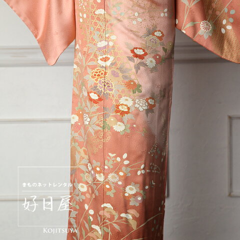サイズ適応身長:148cm〜163cm 身丈:163cm 裄:65cm 袖丈:49cm 前巾:23cm 後巾:29cm■サイズガイドを見る素材素材:正絹付属品〇訪問着 〇帯 〇長襦袢(半襟付き) 〇帯締め 〇帯揚げ 〇重衿 〇腰紐5本 〇伊達締め2本 〇帯板 〇帯枕 〇コーリンベルト 〇衿芯 〇草履 〇バッグ 〇着物スリップ 〇新品足袋*オプションとして、かんざしを別途2000円で追加できます。
