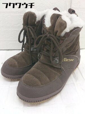 ■ ellesse エレッセ ロゴ 刺繍 ショート ムートン ブーツ サイズS(22.5cm〜23cm) ダークブラウン レディース 【中古】